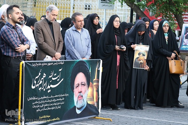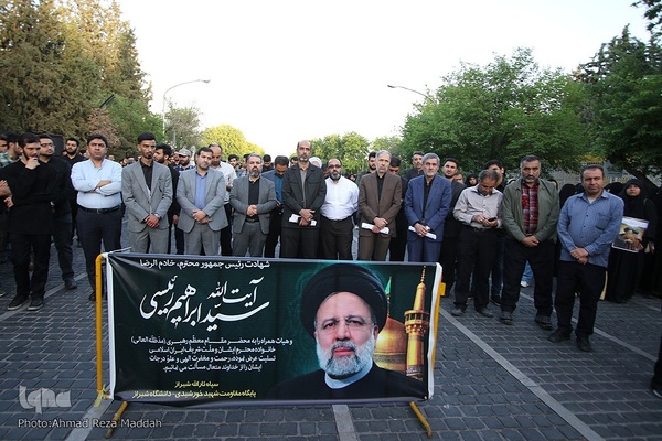 مراسم سوگواری سیدالشهدای خدمت، شهید آیتالله سیدابراهیم رئیسی، رئیس جمهور محبوب ایران اسلامی و همراهان صدیقش، با سخنرانی ایمانیه استاندار فارس، عصر روز دوشنبه ۳۱ اردیبهشت در مقابل ورودی دانشگاه شیراز برگزار شد.