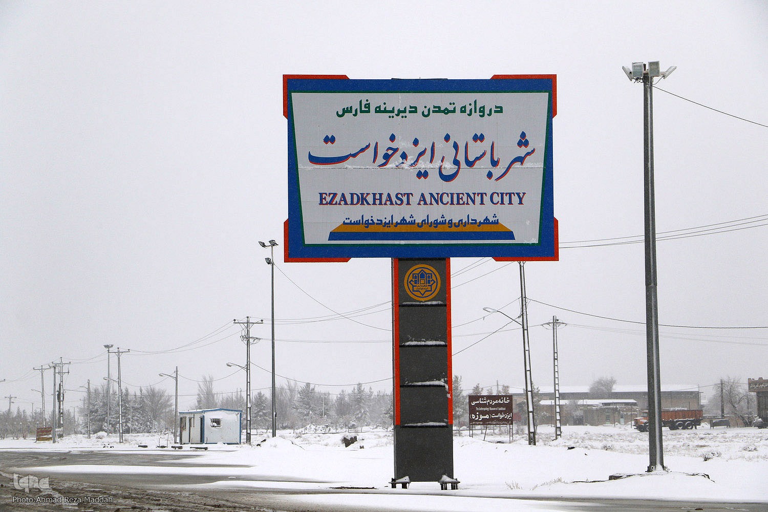 بارش برف شهر باستانی ایزدخواست (یزدخواست) استان فارس را سپید پوش کرد.در این شهر تاریخی دژی ۵ طبقه با امکاناتی نظیر بالکن و حیاط و کوچه وجود دارد. شاید این معماری برای امروز ساده باشد ولی این آپارتمان مربوط به دوره ساسانیان است و حدود ۱۸۰۰ سال پیش توسط ایرانیان ساخته شده است. تا ۱۲۰ سال قبل دارای سکونت بوده است. ساسانیان در ساخت این بنا بسیار هوشمندانه عمل کردند.